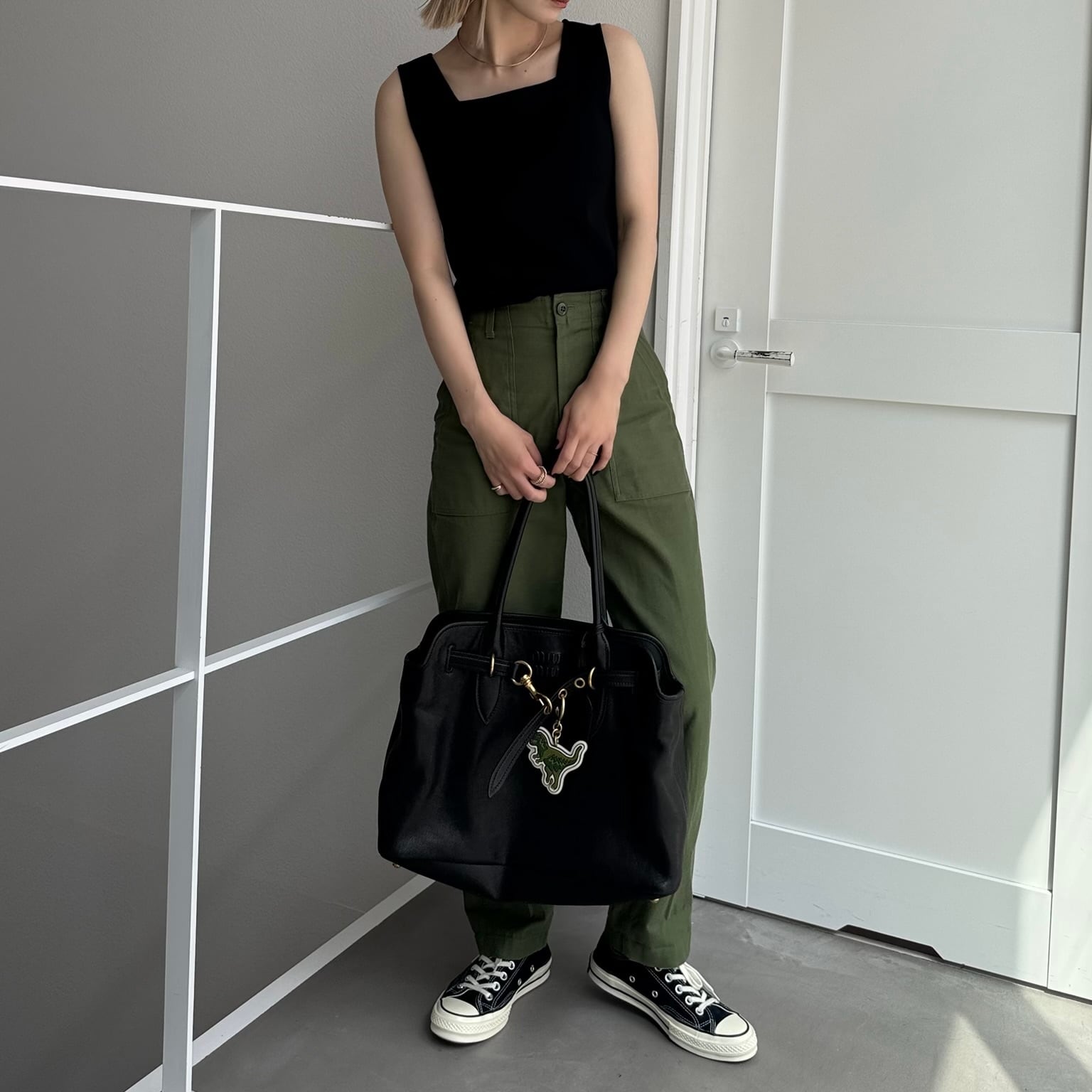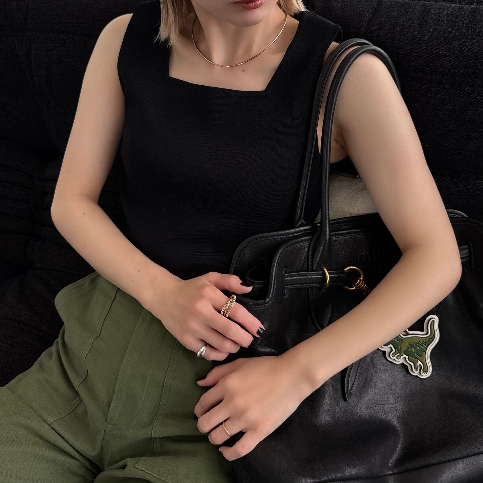 2wayスプリングニットtank/ブラック