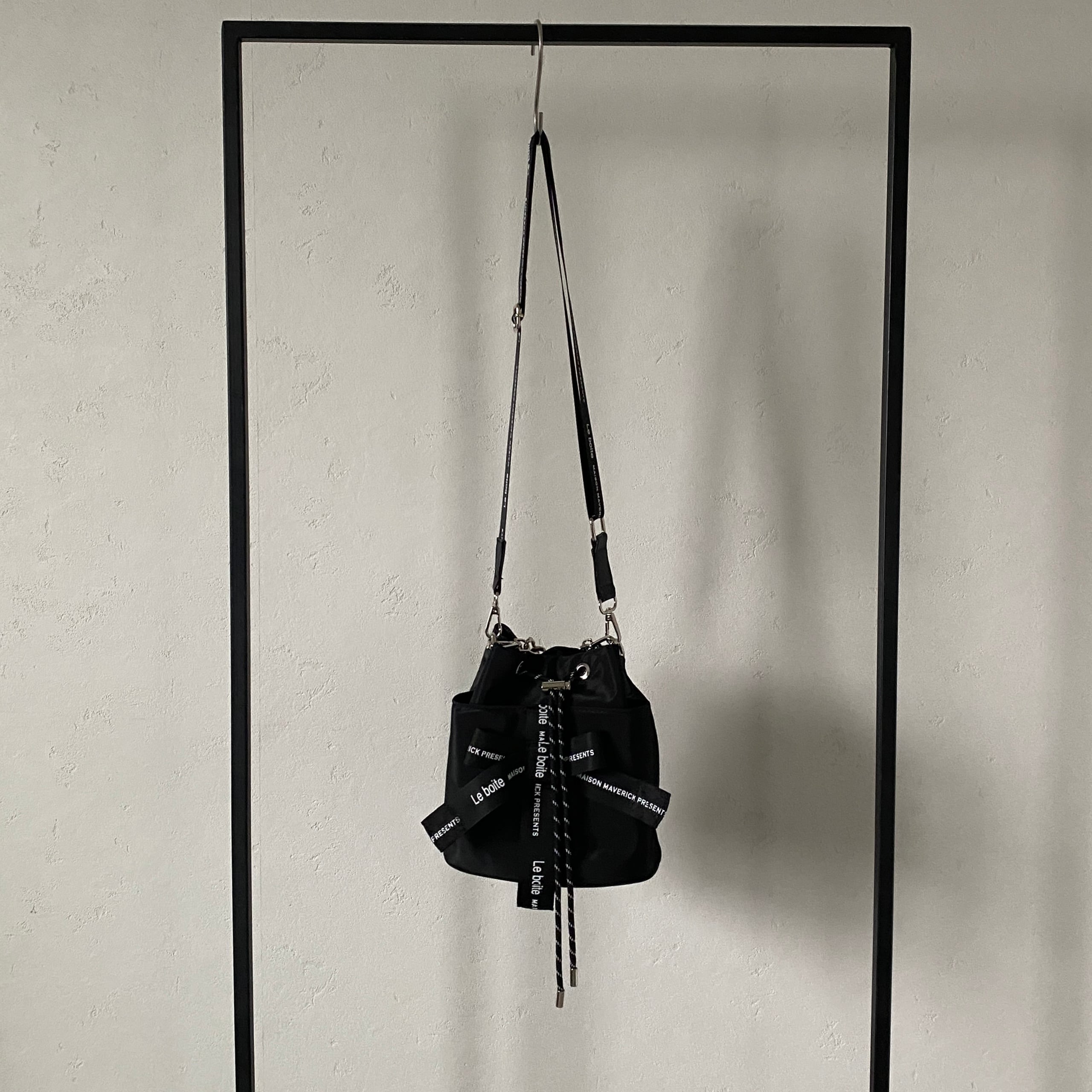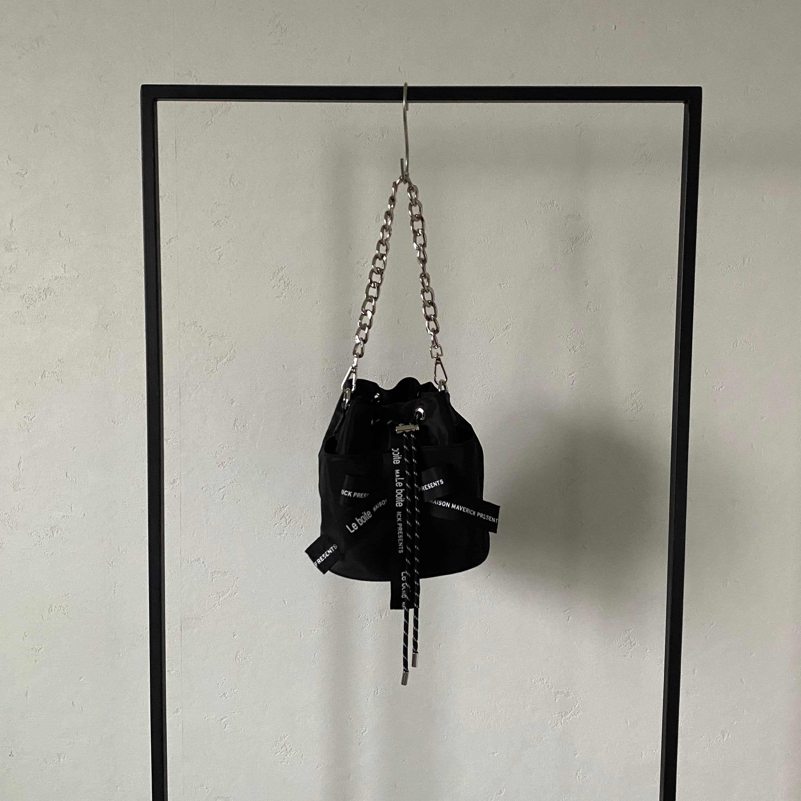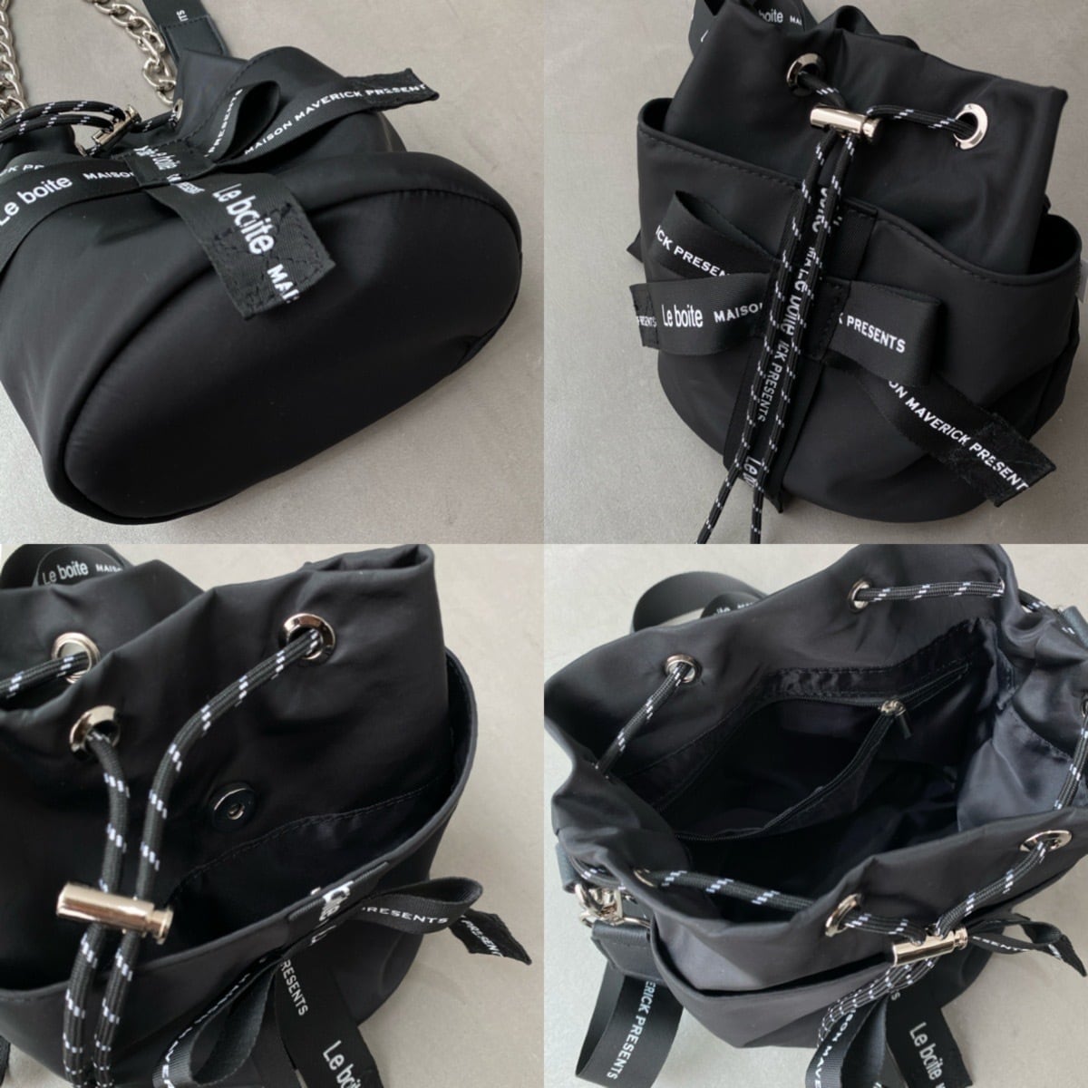 【受注予約:7月中旬入荷予定】drawstring nylon ribbon mini bag/black