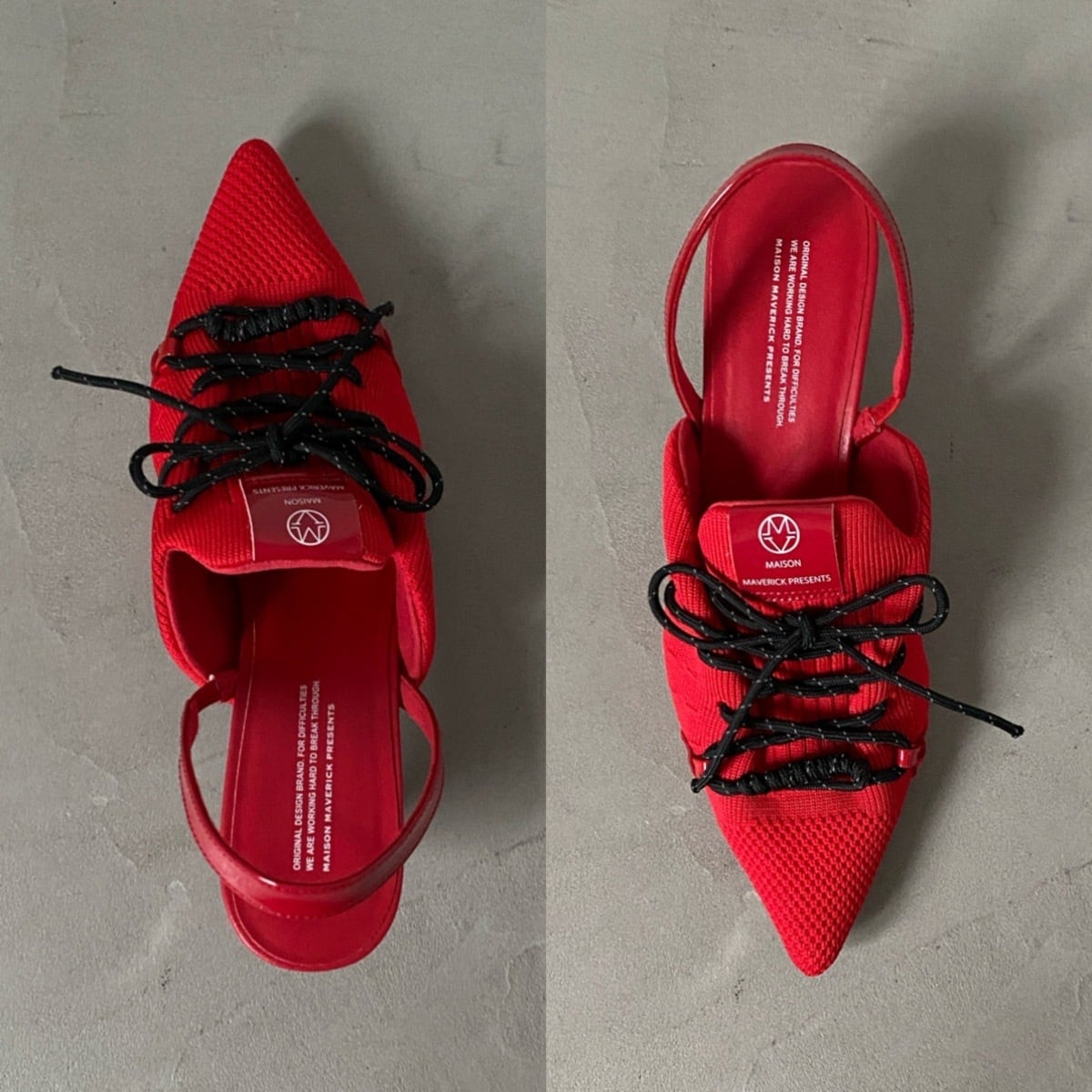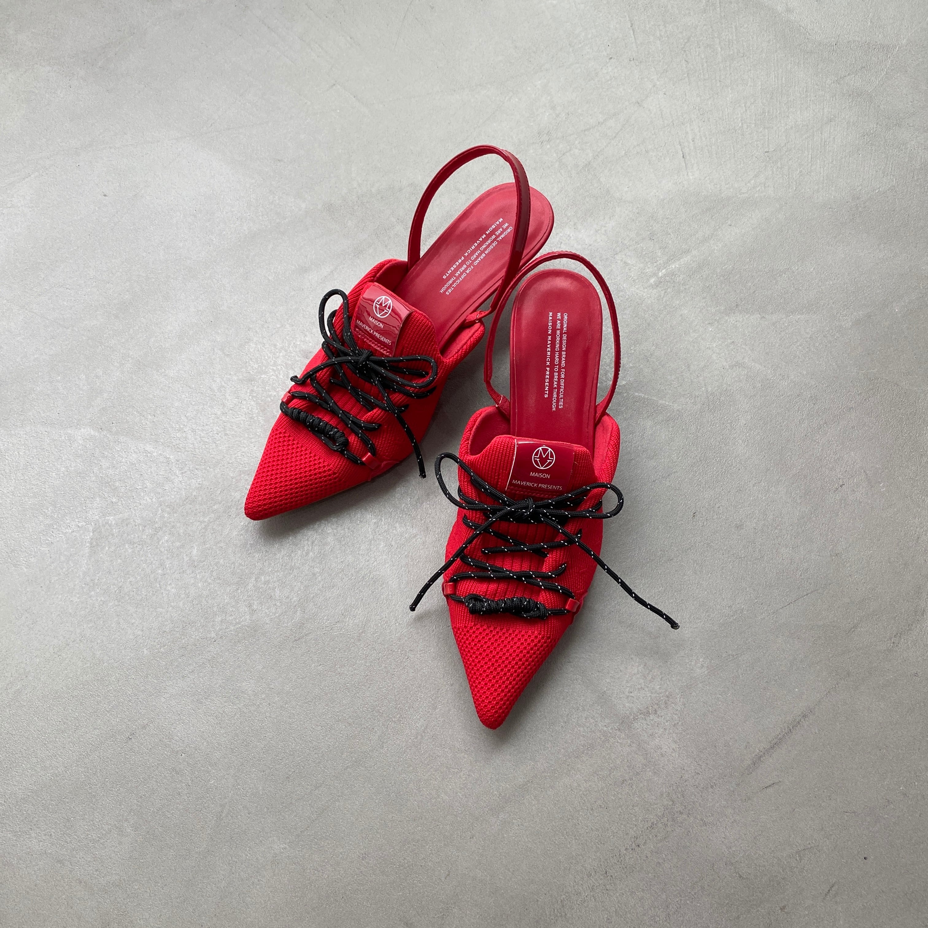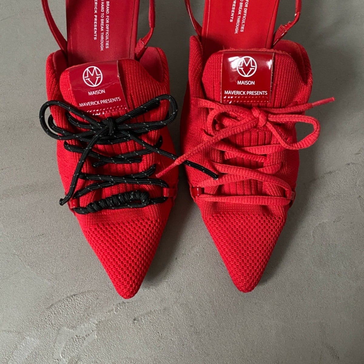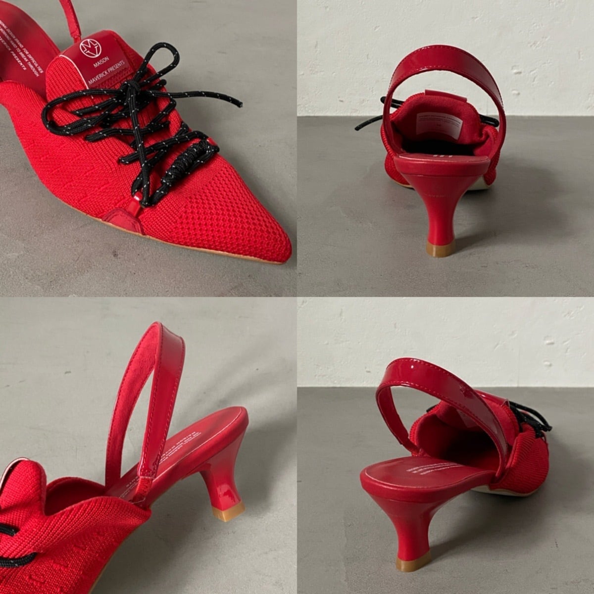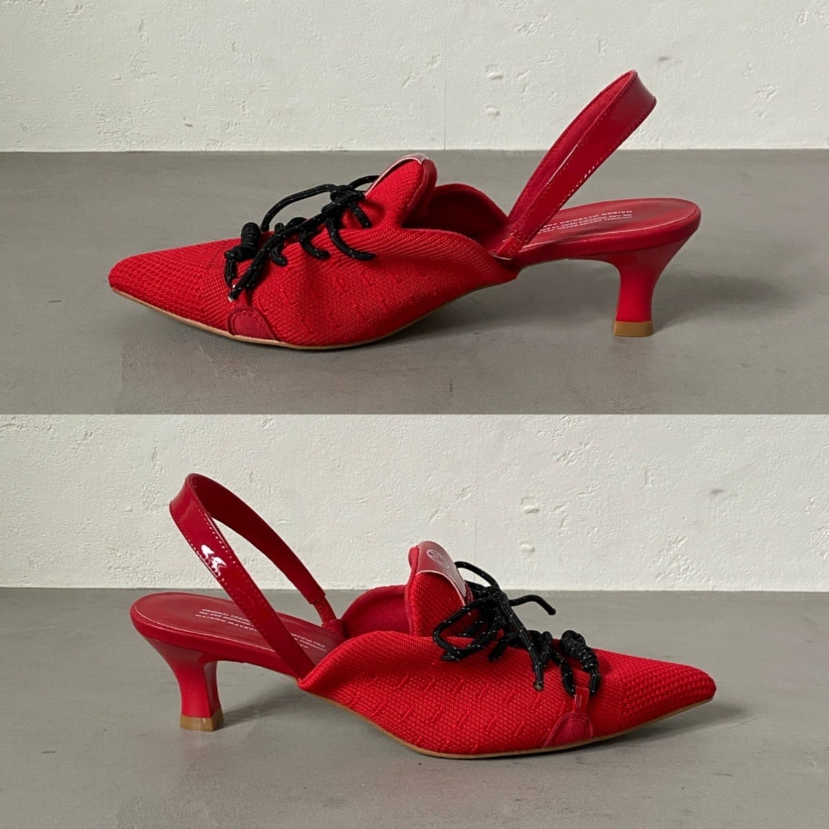 【受注予約:7月上旬入荷予定】knit lace-up sneaker heel/red
