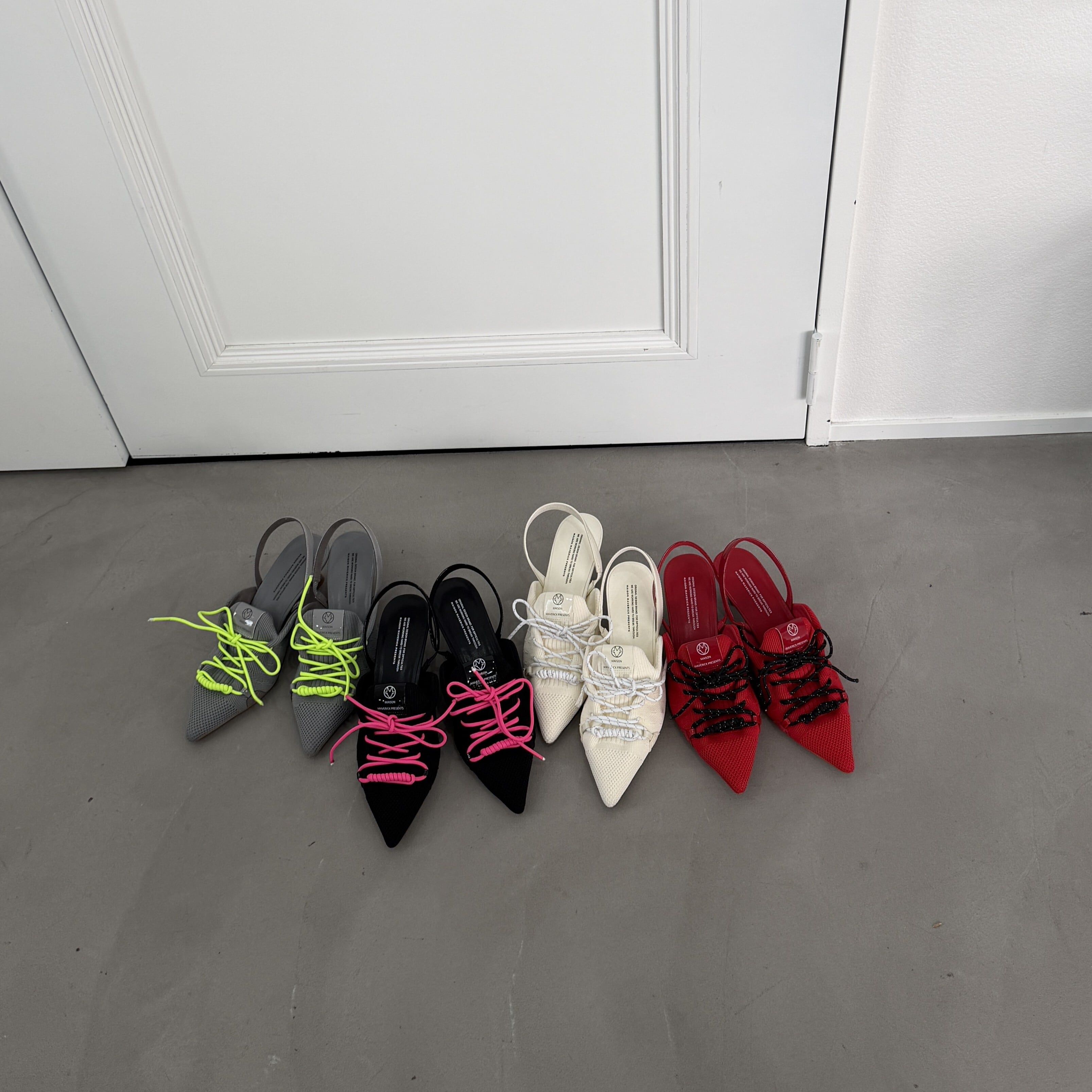 ストリートとスポーティーをミックスしたデザインの4cmスニーカーヒール。2種類の付属の紐でその日の気分で靴紐を替えてお楽しみいただけます。