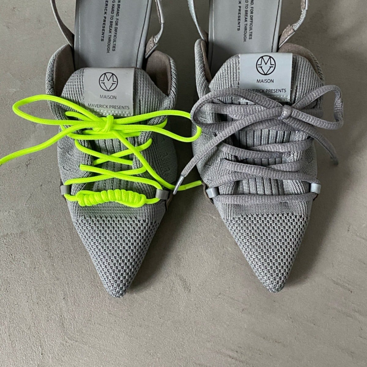 ストリートとスポーティーをミックスしたデザインの4cmスニーカーヒール。2種類の付属の紐でその日の気分で靴紐を替えてお楽しみいただけます。