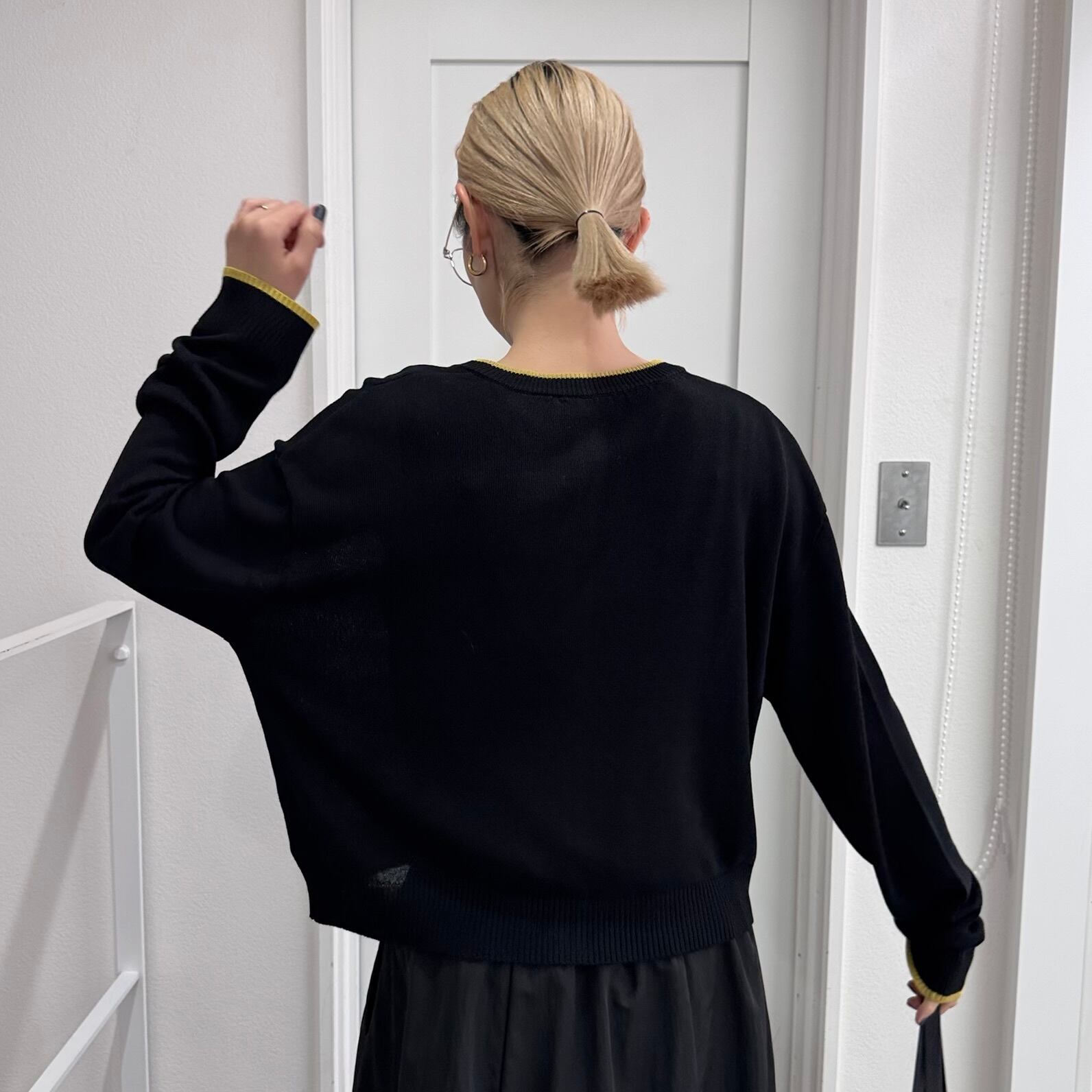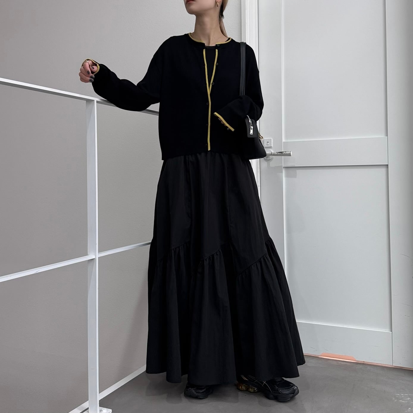 配色ラインがポイントのニットカーディガン。柔らかな生地が心地よく、リラックスして着ていただけます。ベーシックなデザインですが縁の配色ラインや袖丈を長めに仕上げるなど、他と差をつけたデザインに。ほんのり透け感もあるのでシーズンムードも高めてくれます。様々なアイテムと合わせやすいので重宝する一枚。