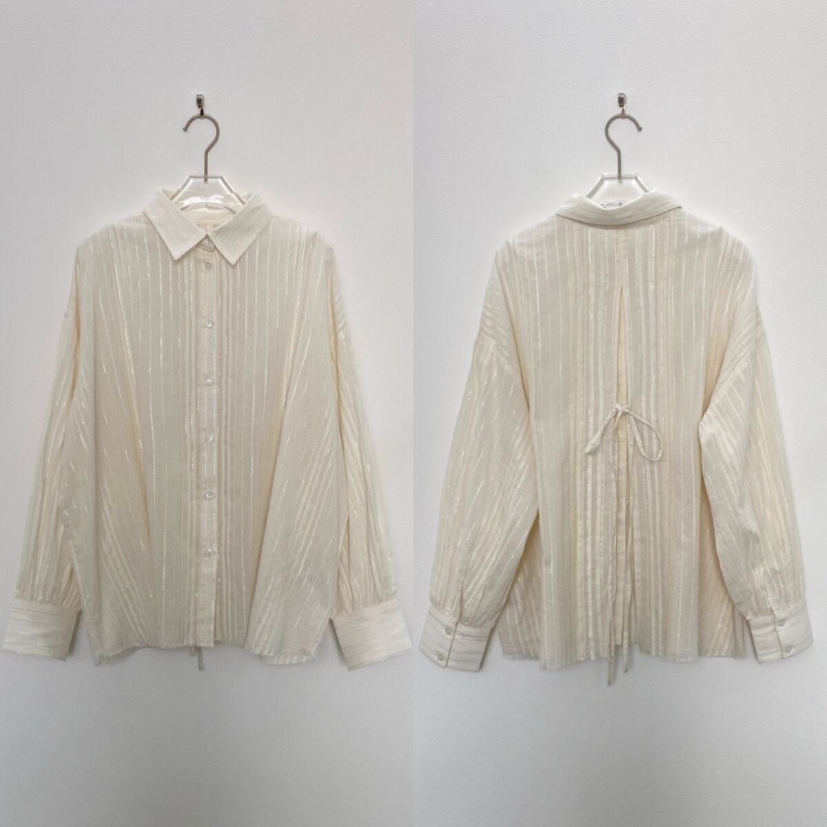 バックプリーツラメストライプSH/アイボリー