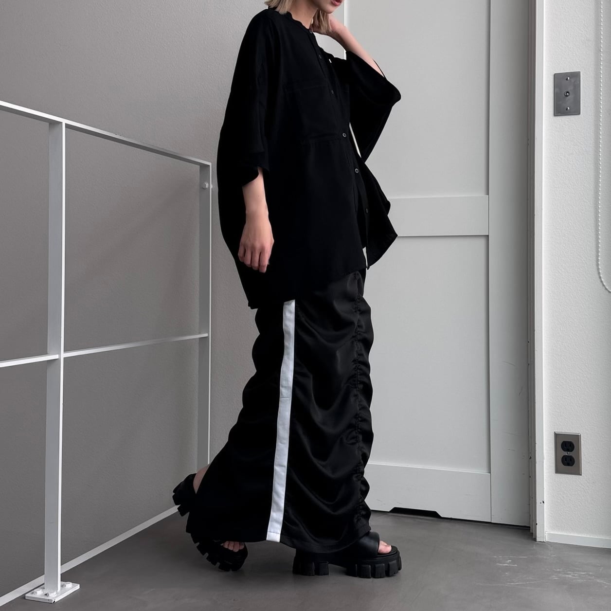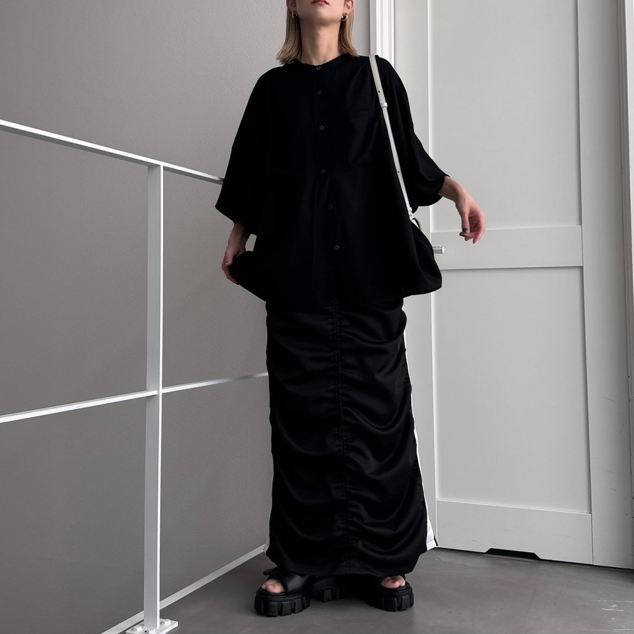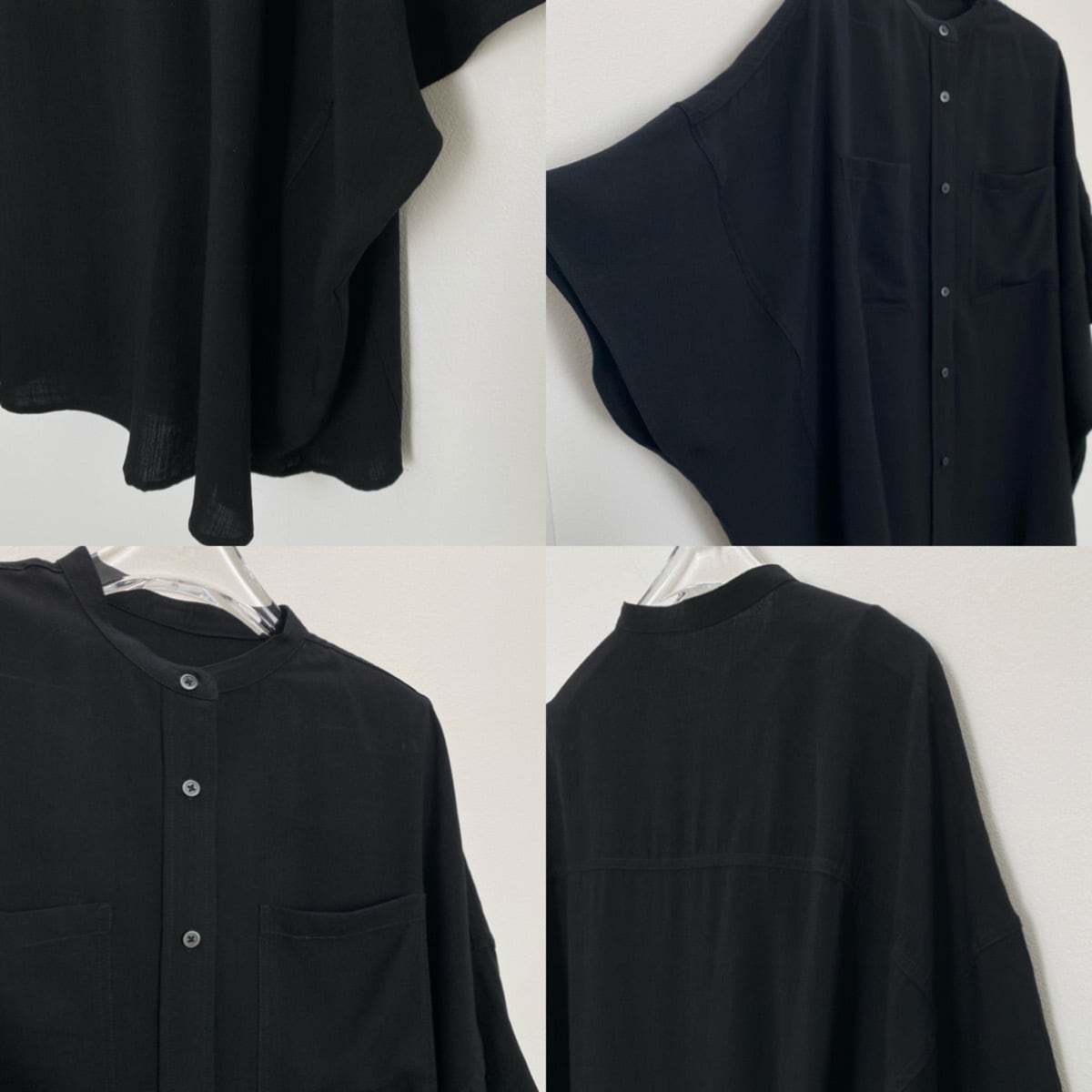 ゆったりとしたシルエットのドルマンシャツ。麻混でひんやりさらっとしてくれる接触冷感機能付き◎ノーカラーデザインで首元すっきり。オーバーシルエットが気になるお腹、腰回りをカバーしてくれます。シャツとしてだけではなく羽織としても◎