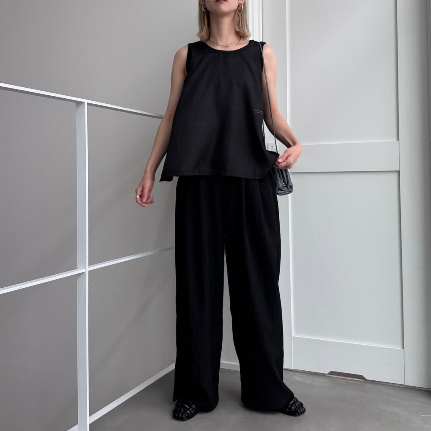 スリーブレスサイドロゴtank/ブラック