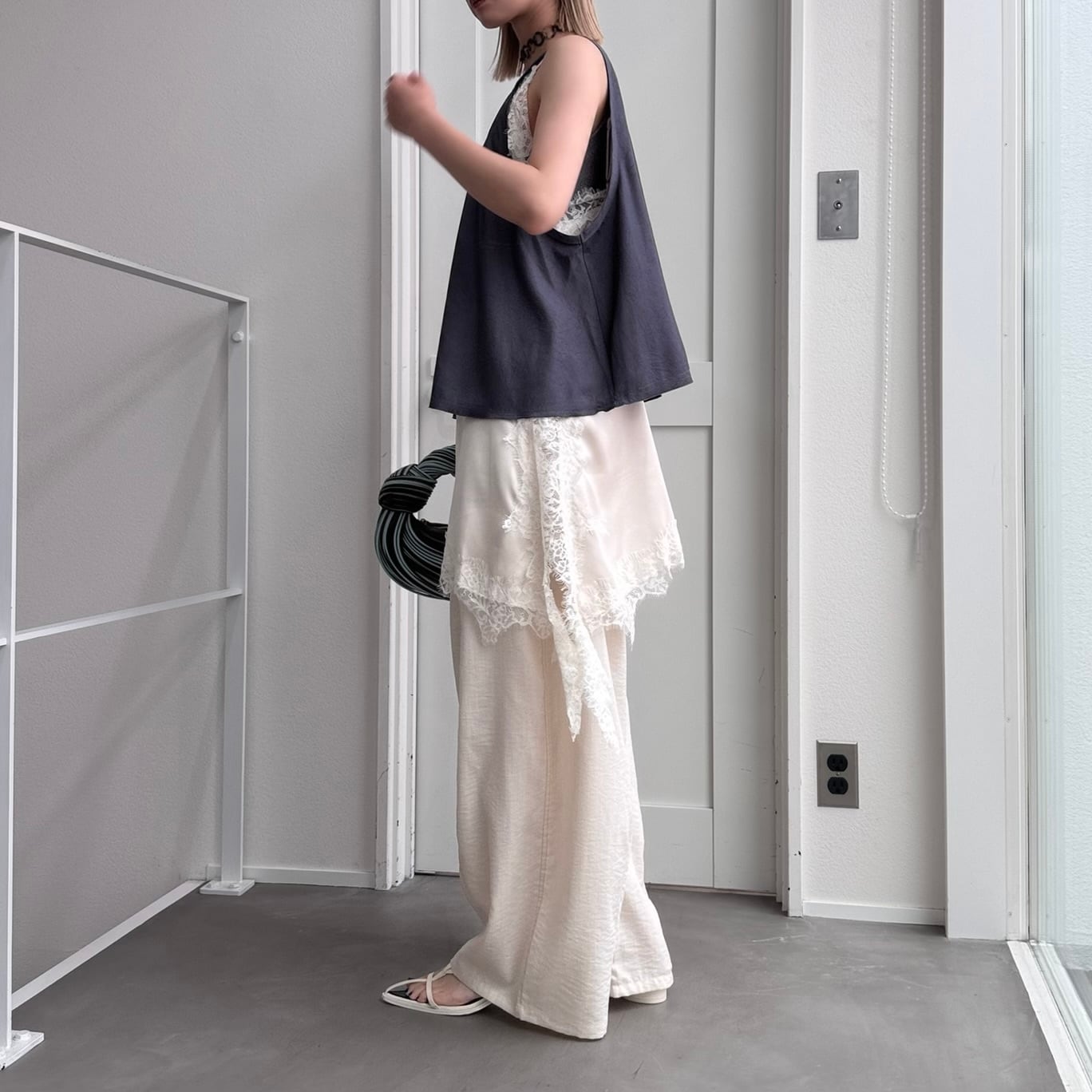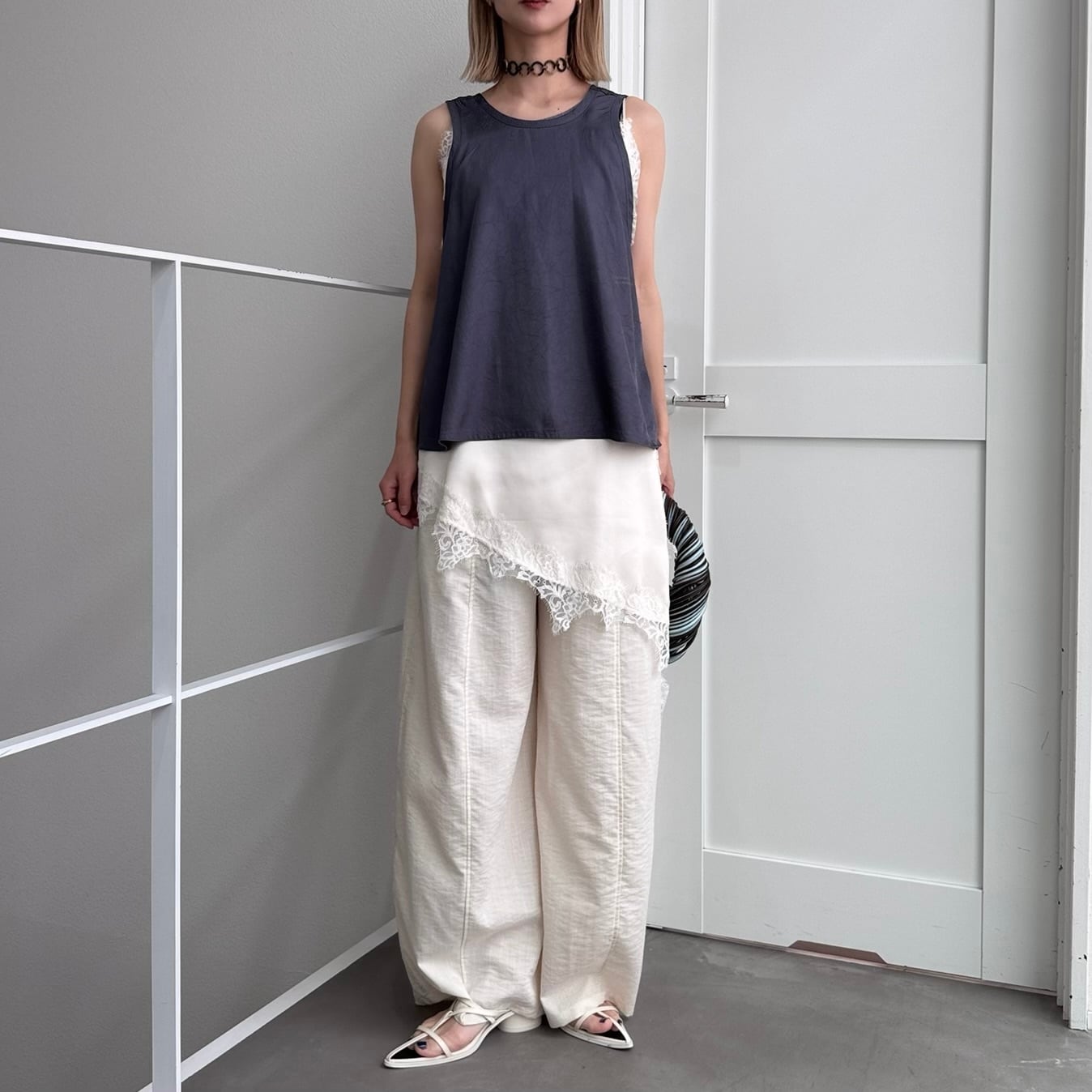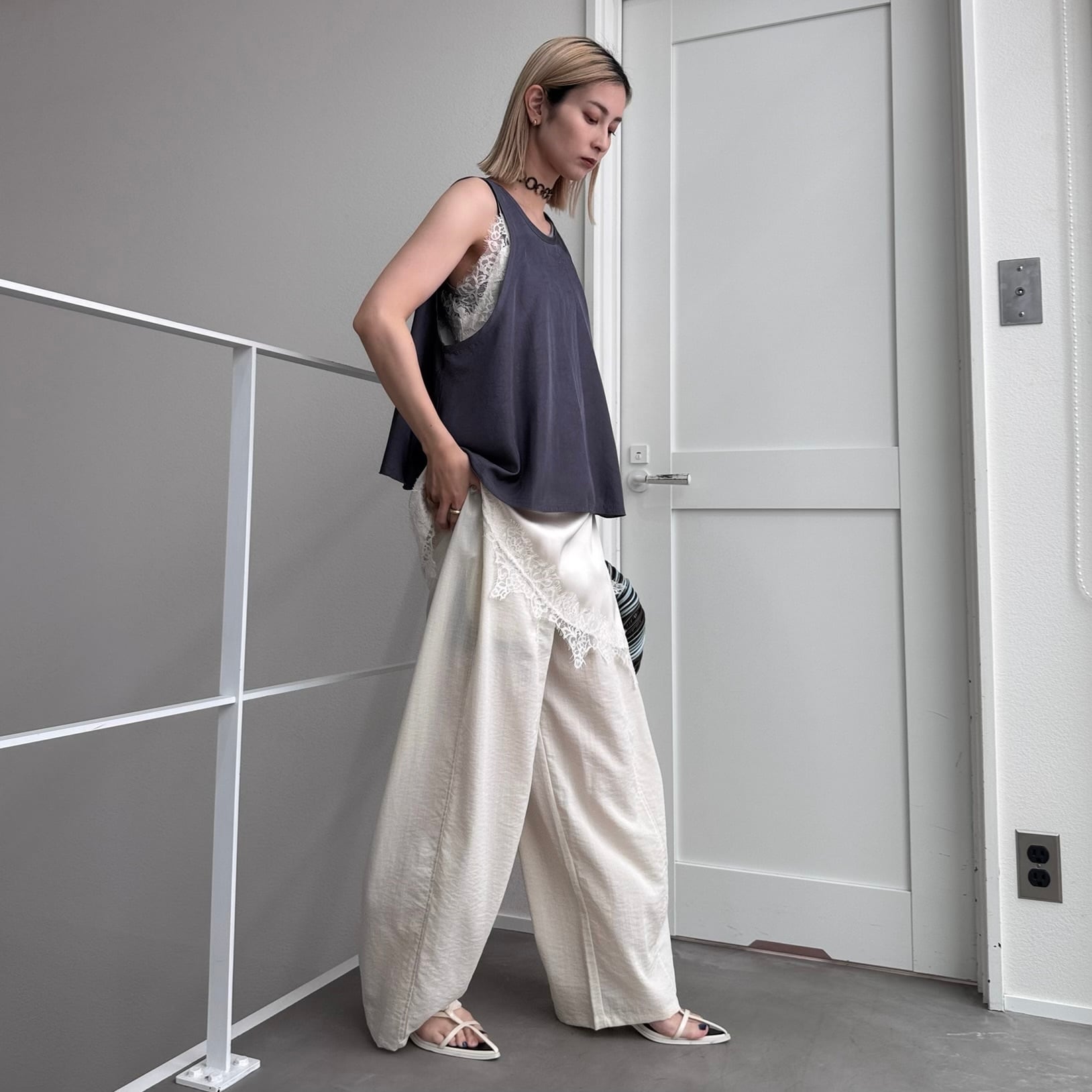 camisole:サテンレースアシメcamisole/アイボリー
