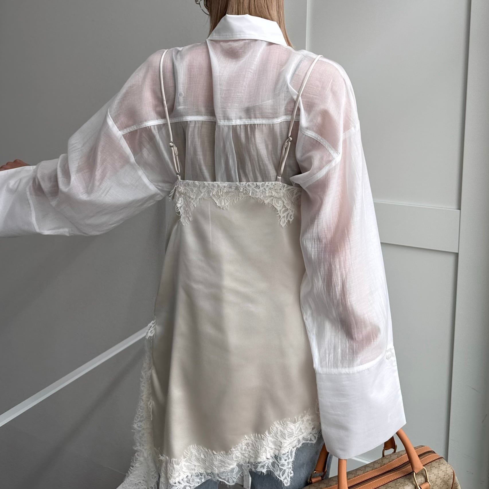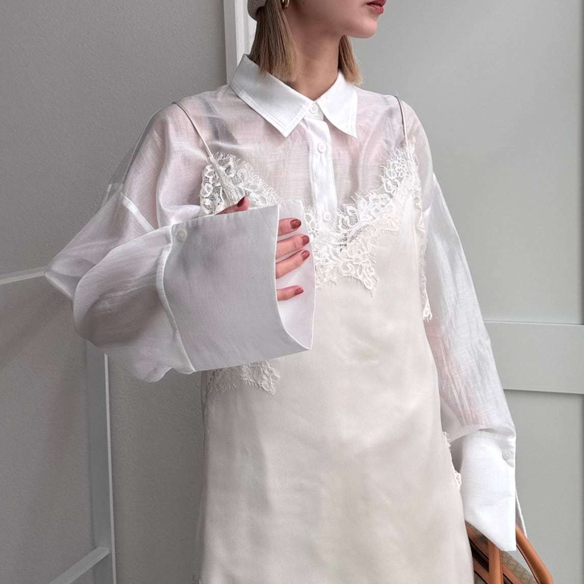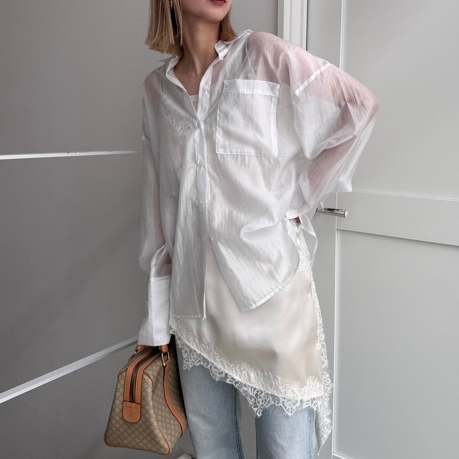 shirt:ワイドカフスエアリーシアーSH/ホワイト