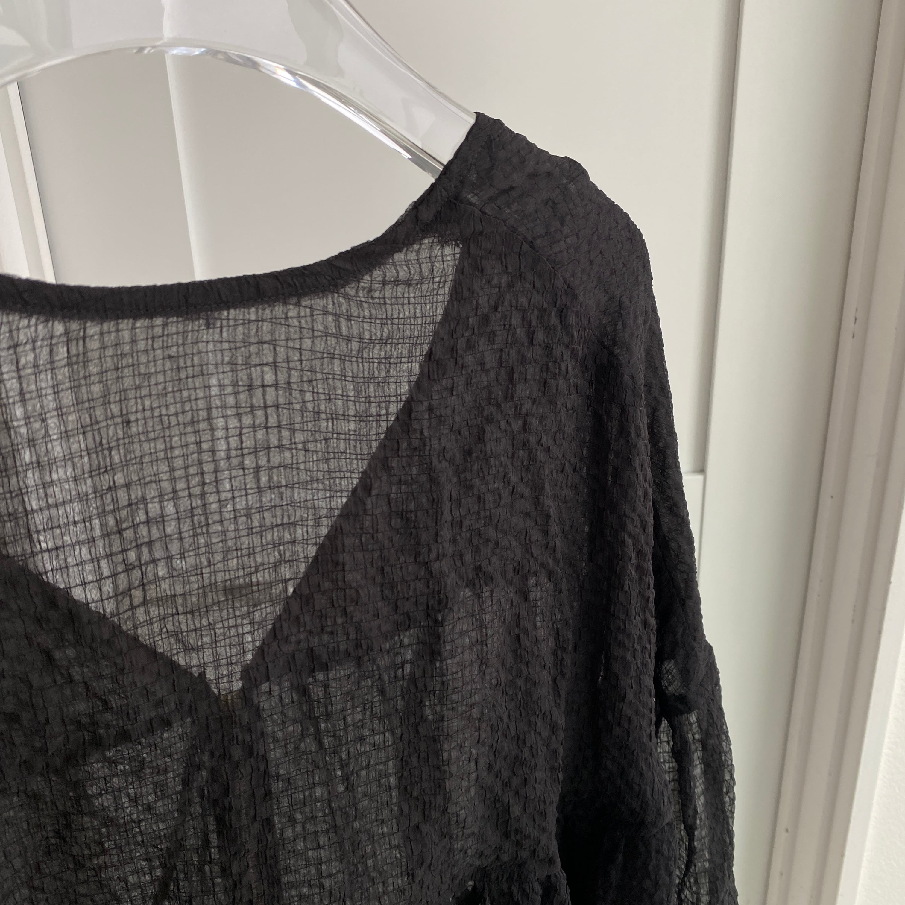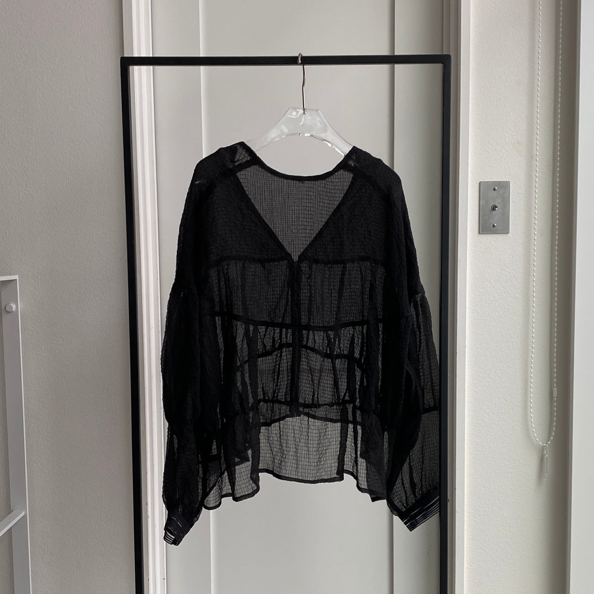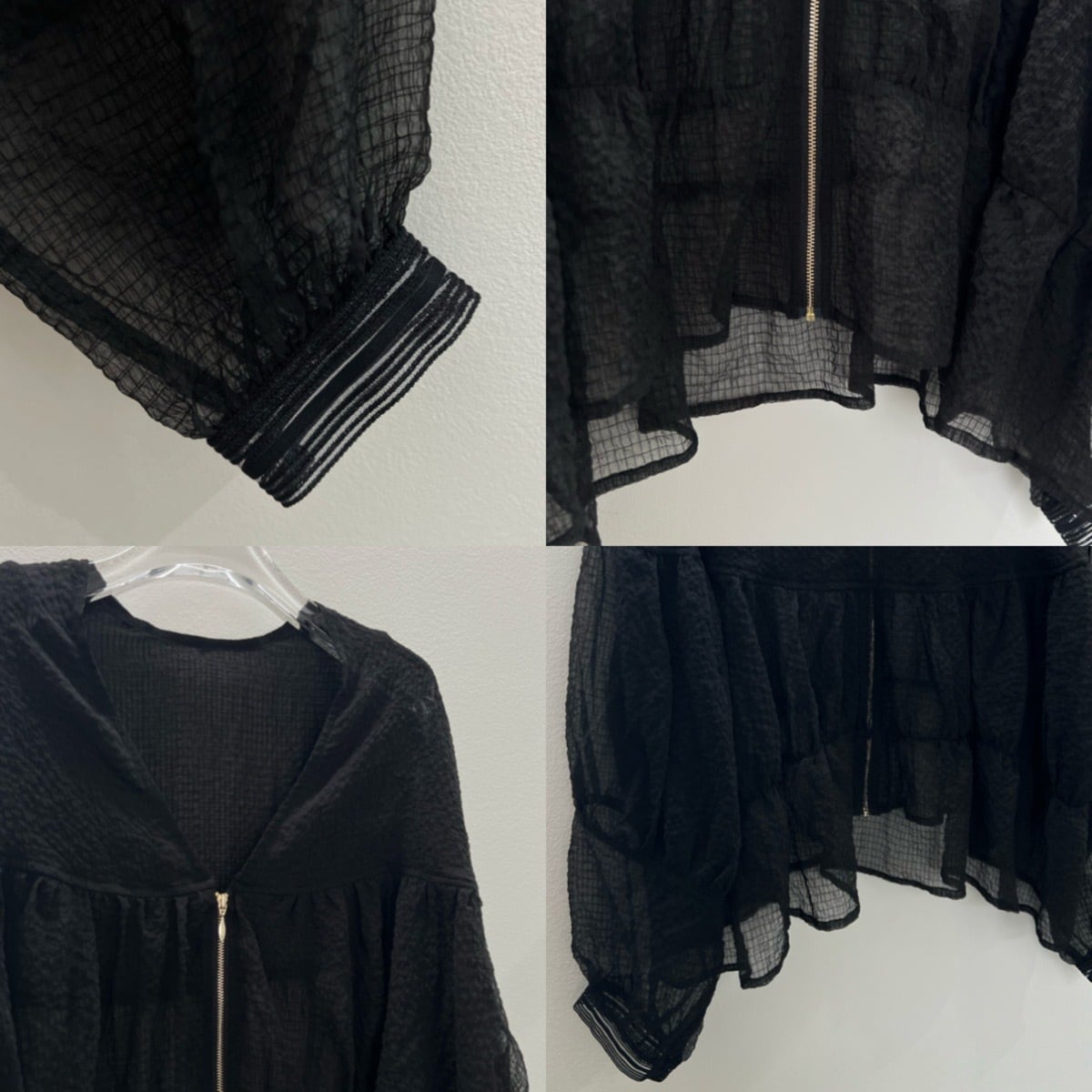 柔らかいシアー素材にふわりと広がるデザインのジップブルゾン。薄っすらと細かいチェック柄になっているので表情のある生地を使用しています。フロントはzipデザインなので甘すぎない印象に。普段使いからオケージョンにもピッタリの1枚です。