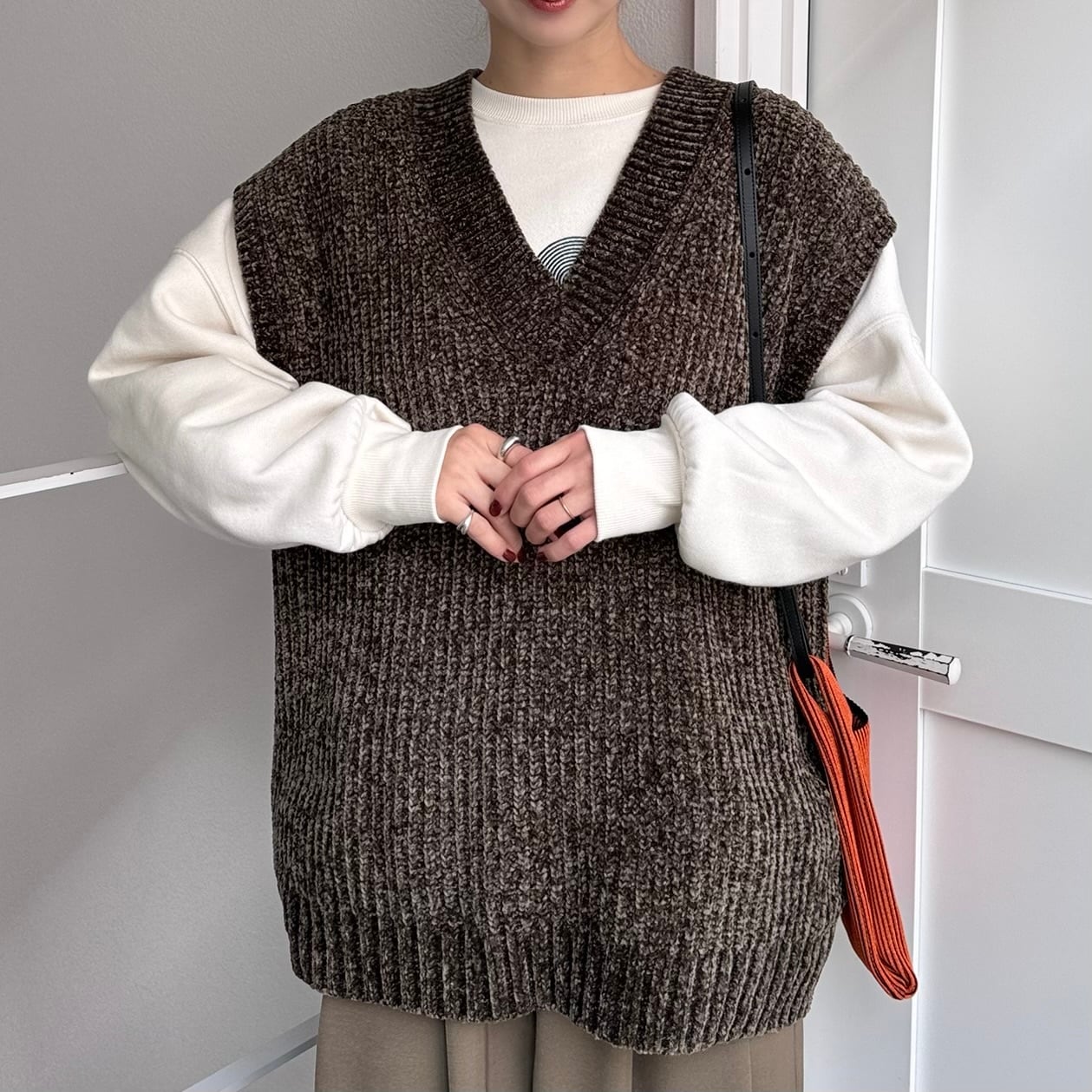 ざっくりとした質感がこなれ感たっぷりな片畦(あぜ)編みモールニットベスト。