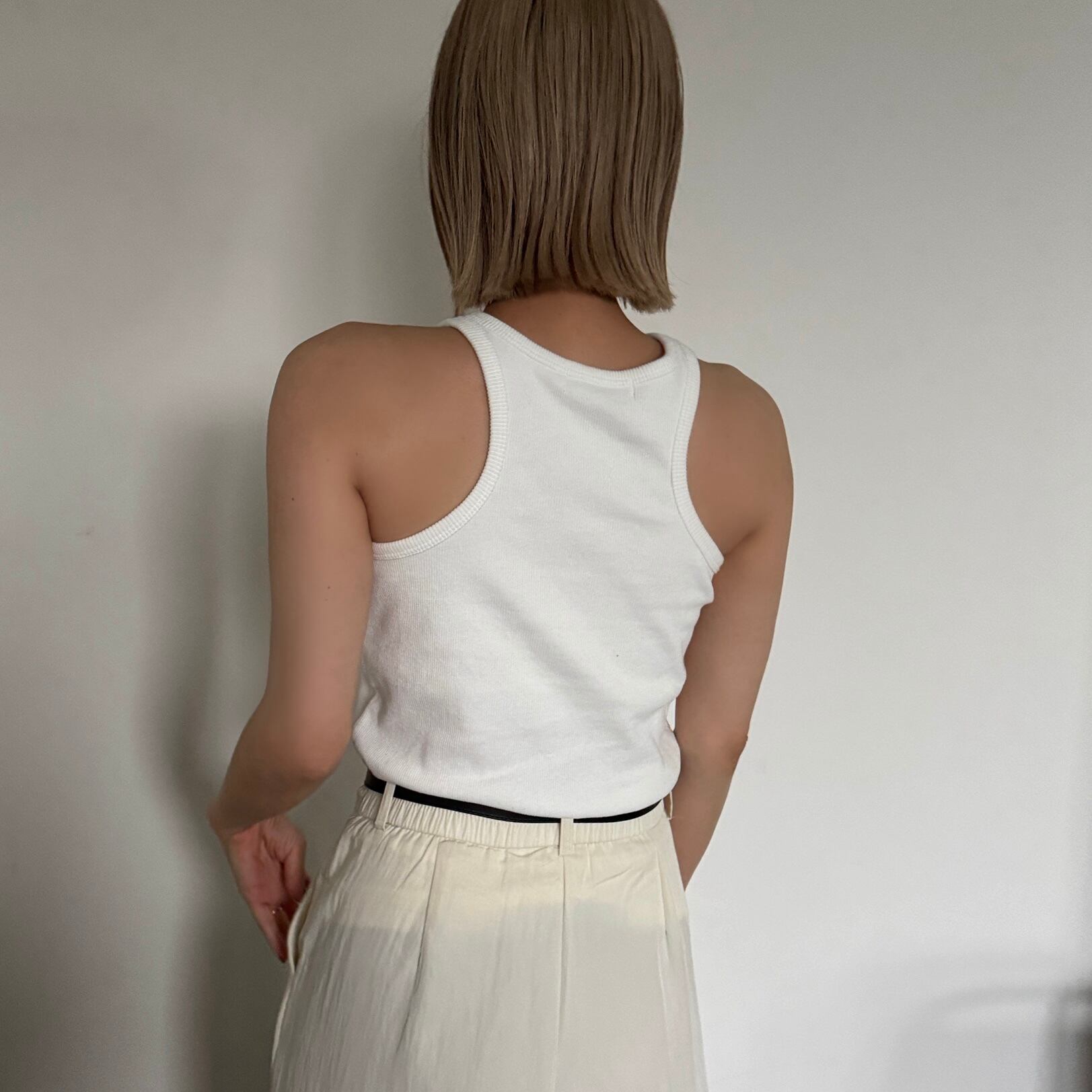 深いカーブがアクセントになるアメスリタンク。あえて深めにカーブをつける事によってスタイリッシュなイメージに。取り外し可能なカップが付いているので1枚でも安心なデザインです。今期大人気のシアーアイテムのインナーはもちろん、オールインワンやワンピのインナーとしてもおススメ。秋冬はニットやカーディガンのインナーとしてヘルシーな肌見せコーデに。1年中ご着用いただけます。