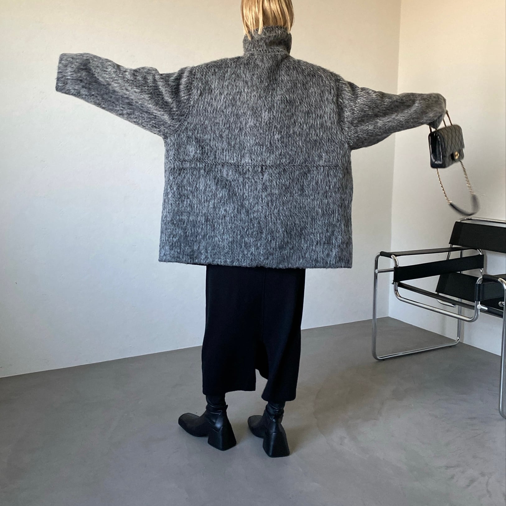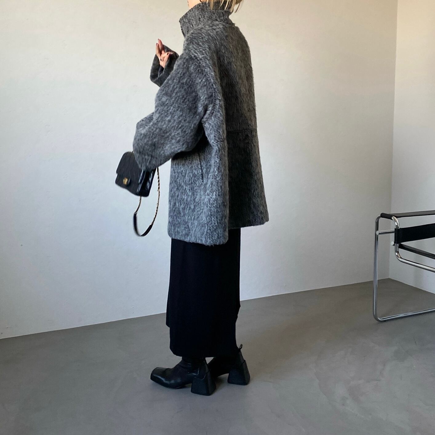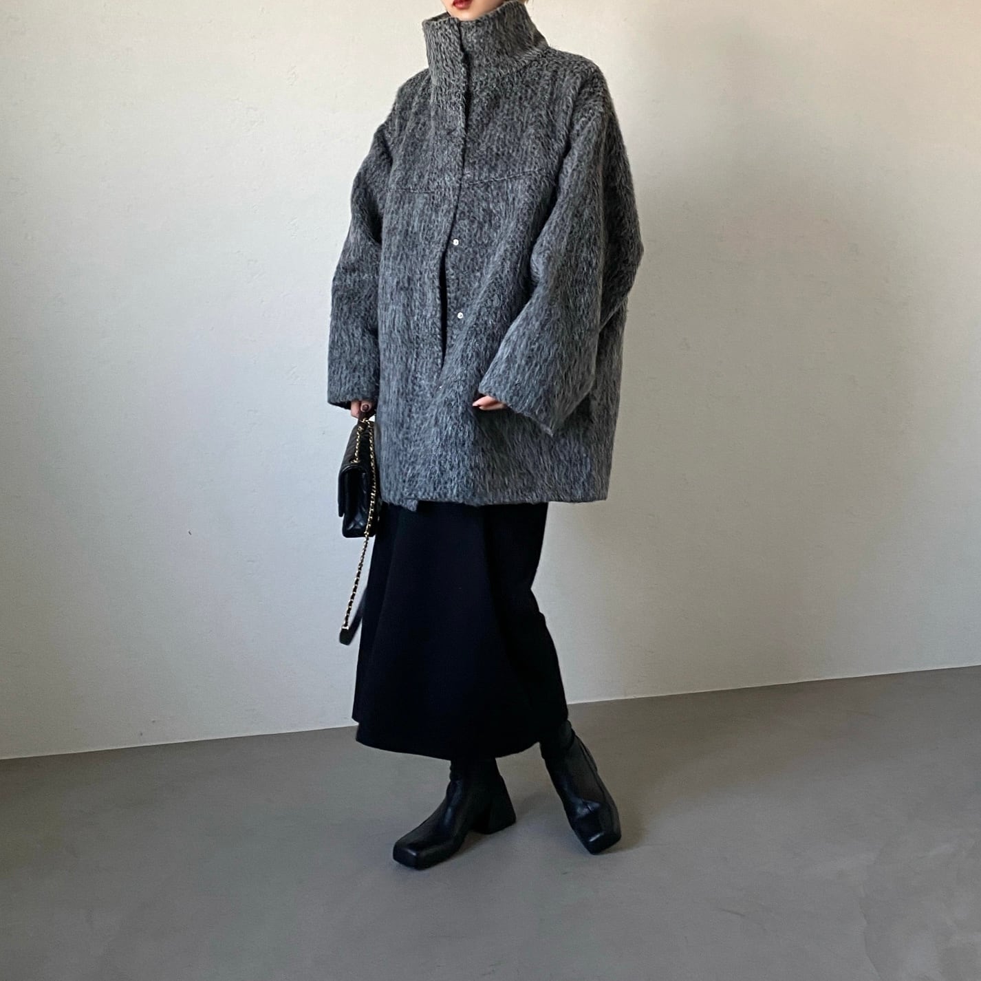 スタンドカラーシャギーミドルCO/チャコールグレー