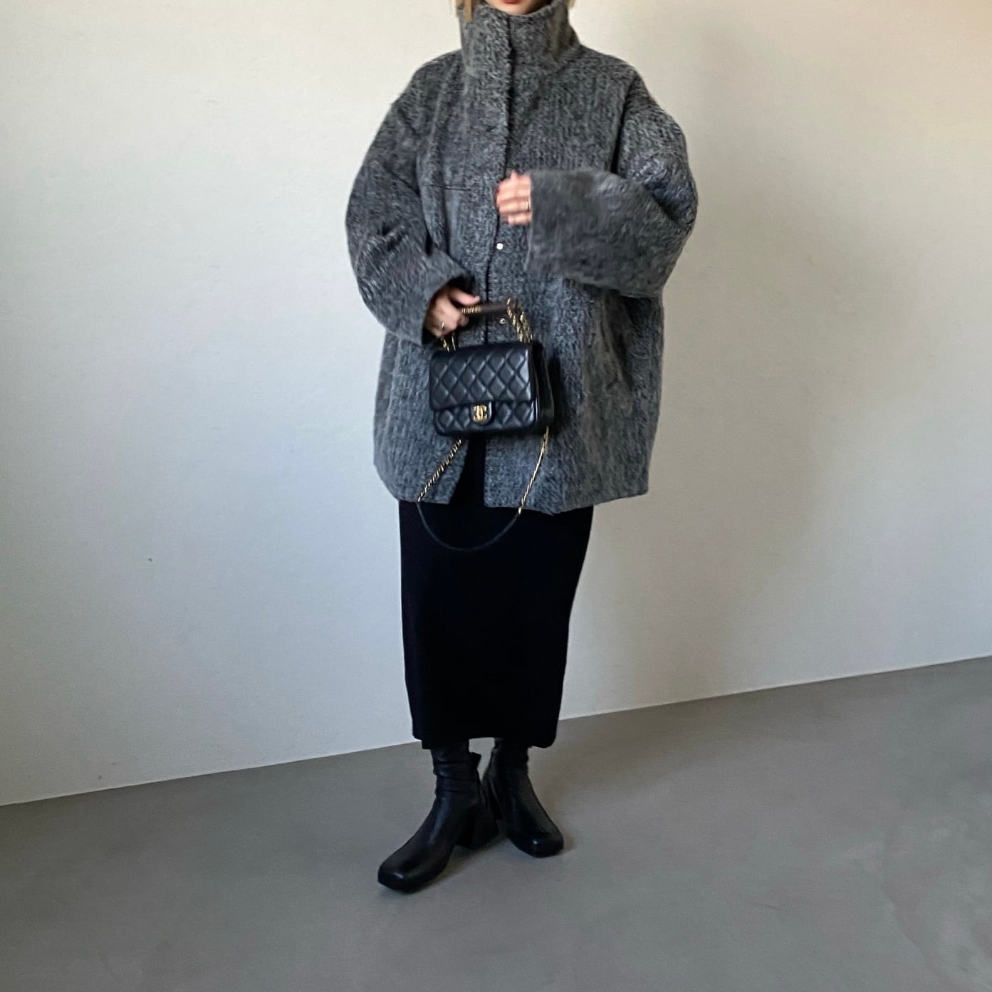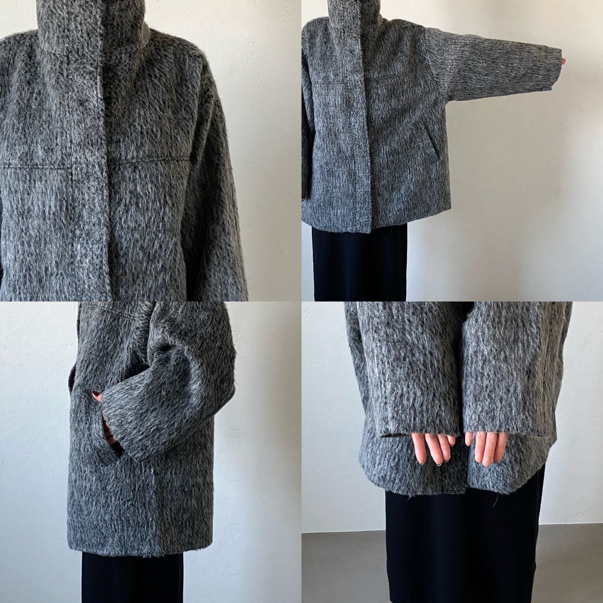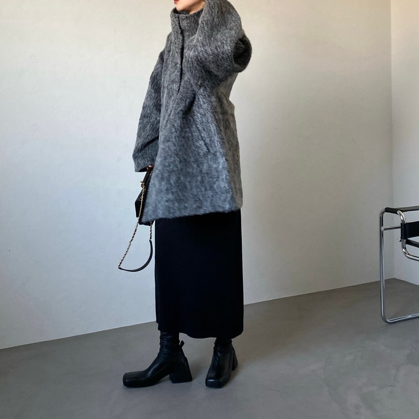 スタンドカラーシャギーミドルCO/チャコールグレー